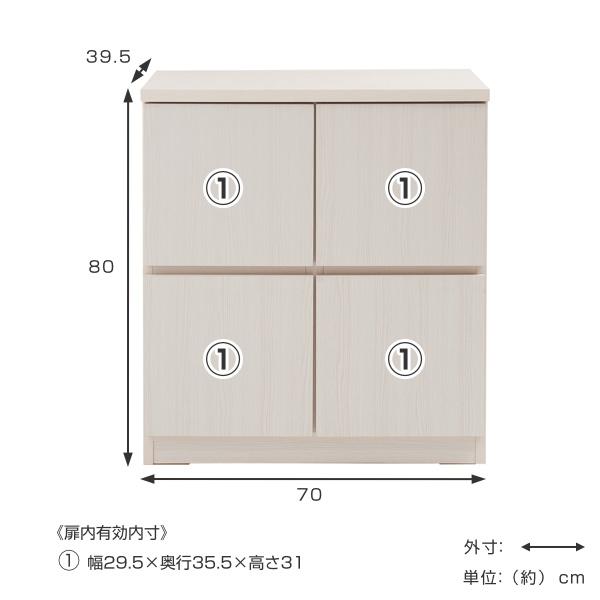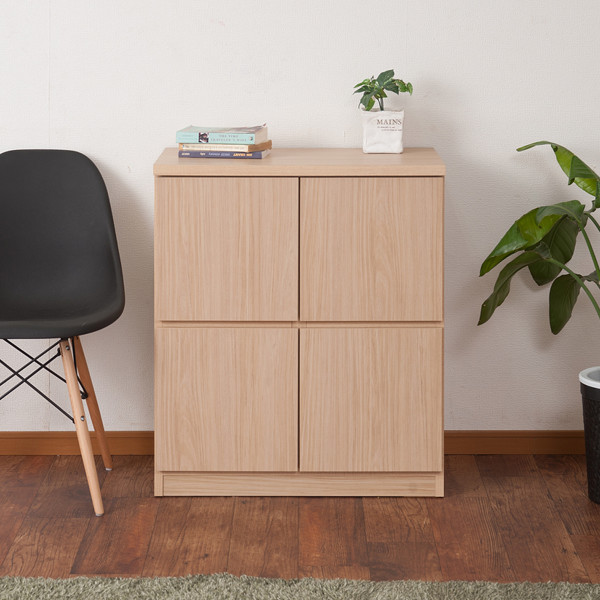 キャビネット 2段 スクエアキャビネット ロータイプ 板扉 幅70cm ( リビング収納 ラック 扉付き カウンター下 A4サイズ対応 日本製 完成品 収納 壁面収納 窓下収納 ホワイト ナチュラル 国産 木目調 北欧 )
