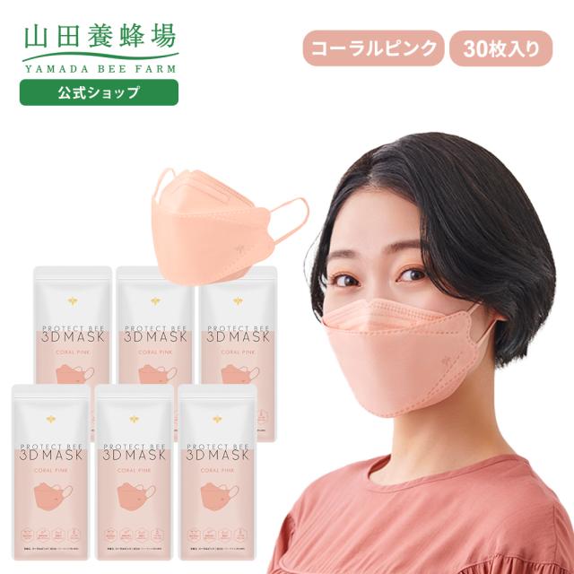 山田養蜂場 プロテクトビー 3Dマスク<コーラルピンク>30枚(5枚入×6袋) 立体マスク マスク 不織布 3Dマスク 人気 4層フィルター ホワイトデー