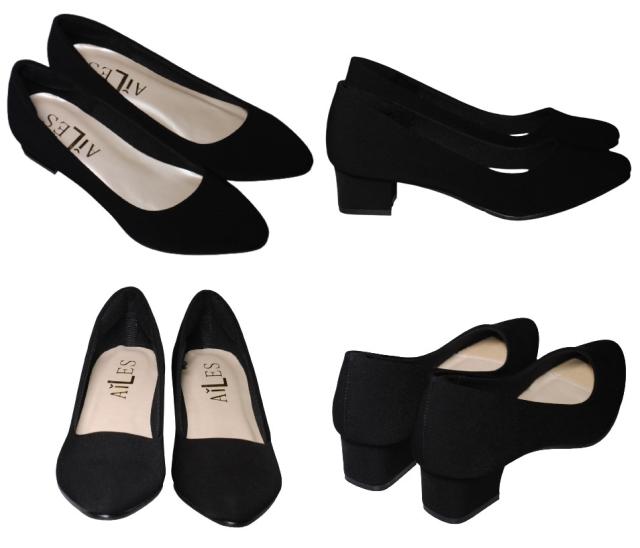 AiLES 5210 S M L LL レディース アイル パンプス ブラック カジュアル 合成繊維 ローヒール 冠婚葬祭 フォーマル 合皮