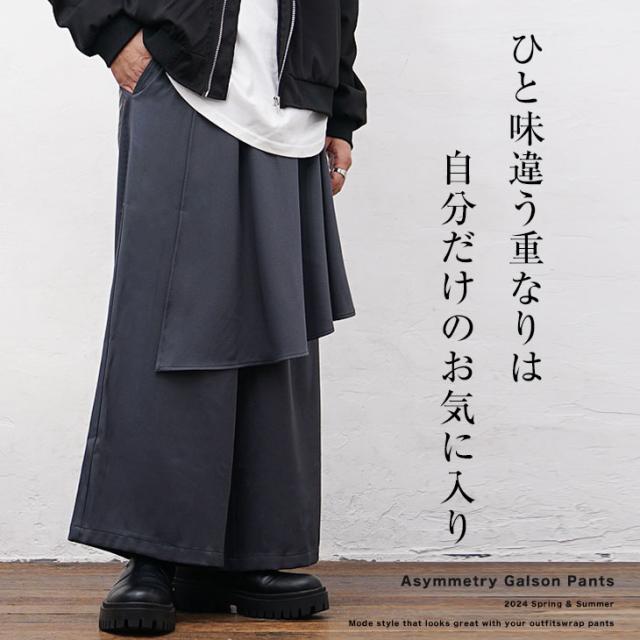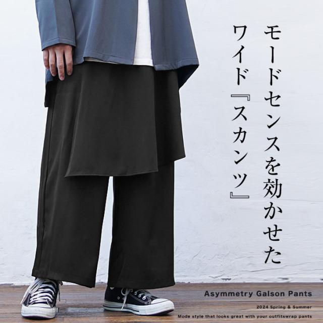 【アシメトリーギャルソンパンツ】スカート見えするワイドパンツを意味する「スカンツ」。