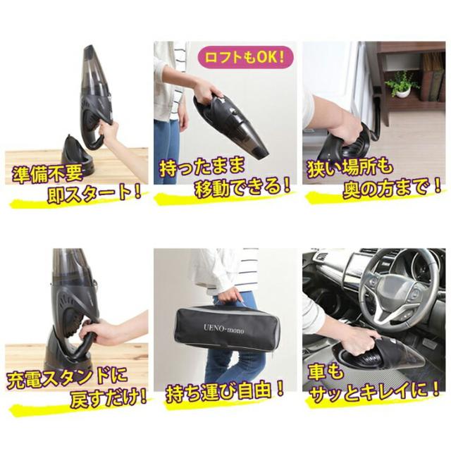 UENO-mono 大容量 ハンディクリーナー おしゃれ 吸引力 ペットの毛 猫砂 カークリーナー 充電式 コードレス スタンド付き サイクロン式掃除機 食べこぼし 車 トランク 砂 小石 3種ノズル ステンレスフィルター 後払い 決済 SUIRYU 吸龍