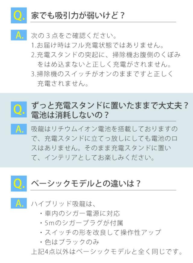 - 吸い込みが良くて品物自体はとても良いものです。 ただ充電ホルダーに立てにくく、カチャッと嵌めてるのに外れて倒れたりしてなかなか慣れないです。 それが星1つ分マイナスです。