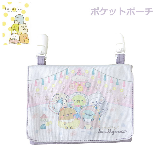すみっコぐらし ポケットポーチ すみっこぐらし ベビー ポケット ポーチ su479lv-3 ショルダー 移動ポケット 付けポケット キッズ 小学生 女の子 高学年 低学年 幼稚園 かわいい クリップ ポーチ 移動 ハンカチ しろくま ねこ とかげ ぬいぐるみ ポケットがない服に取り付け
