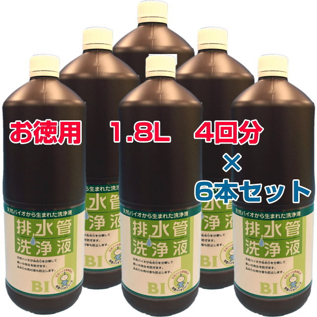 排水管洗浄液 天然バイオ お徳用1.8L 4回分×6個セット スリーケー パイプクリーナー 快潔バイオ 排水溝 排水口 つまり ぬめり ヌメリ 配管洗浄剤 排水溝クリーナー