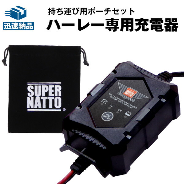 ハーレー専用充電器(6V/12V切替式)+専用ポーチ■■【サルフェーション除去機能搭載】トリクル充電機能で冬の間つけっぱなしOK!【PSE新基準対応】バッテリーテンダー対応 ストリート、スポーツスター、ダイナ、ソフテイル、ツーリング