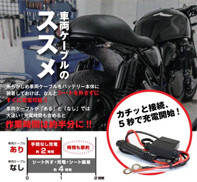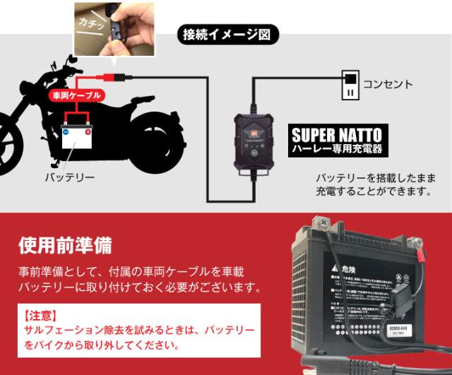 ■対応充電器:スーパーナット充電器、ボルティクス充電器、星乃充電器、ハーレー専用充電器、リチウム充電器