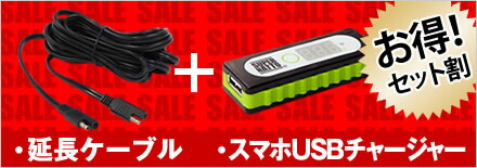 ※USBチャージャーは12Vバッテリー専用です。充電器とは絶対に直接接続しないでください。