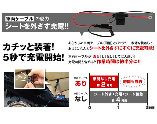 ※他社製の車両ケーブル(SAEプラグ)も使用可能ですが、その場合は「保証対象外」となりますので、予めご了承ください。