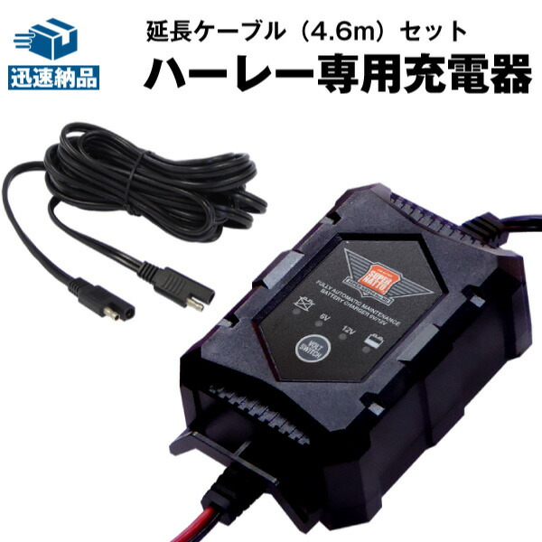 【在庫有り・即納】6V/12V切替式ハーレー専用充電器+延長ケーブル■SAE端子■【スーパーナット 星乃充電器 オプティメート4デュアル 対応】【新品】