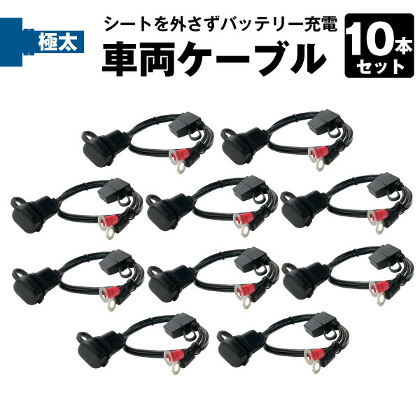 バイク専用 車両ケーブル 10本セット バッテリー充電器対応【SAE端子対応】【より太く、よりタフに!】高耐久 生活防水 ショート防止【スーパーナット 星乃充電器 オプティメート4デュアル 対応】AWG14
