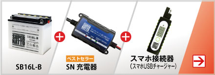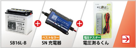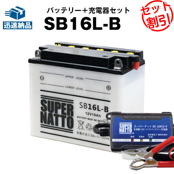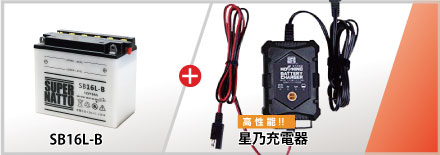 バイクバッテリー充電器+SB16L-Bセット■バイクバッテリー■GM16Z-3B, FB16L-B, 12N16-3B互換■ボルティクス・スーパーナット(液入済)