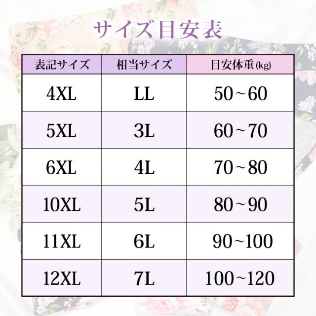 | 実寸サイズ (cm) | 【4XL/5XL/6XL/10XL/11XL/12XL】 ウエスト 66/72/74/76/82/84 ヒップ 72/76/78/84/86/90 ショーツ丈 29/30/30/33/34/34 ※平置きで伸ばさずに採寸したサイズです。 <ご注意> こちらの商品は大きめのサイズ表記となっています。 サイズ感につきましては、画像のサイズ目安表をご参考ください。 |