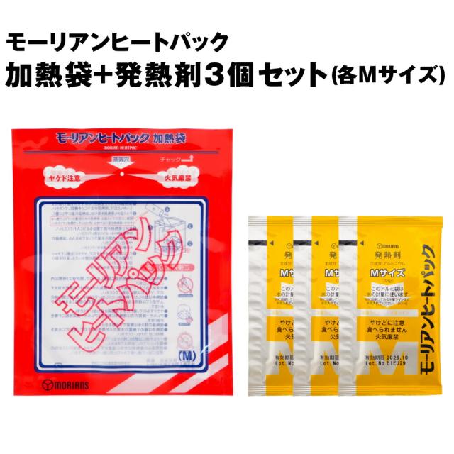 【メール便OK(2セットまで)】 モーリアンヒートパック Mサイズ 加熱袋 1個 + 発熱剤 3個セット (非常食 保存食 防災グッズ 防災用品) SU