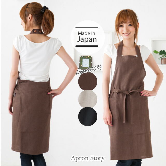 リネンホルターネックエプロン 日本製 麻100% シンプル 無地 黒 かわいい おしゃれプレゼント ギフト 母の日【メール便対応可】【N】【Y】