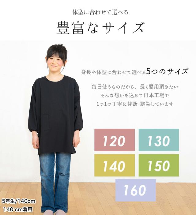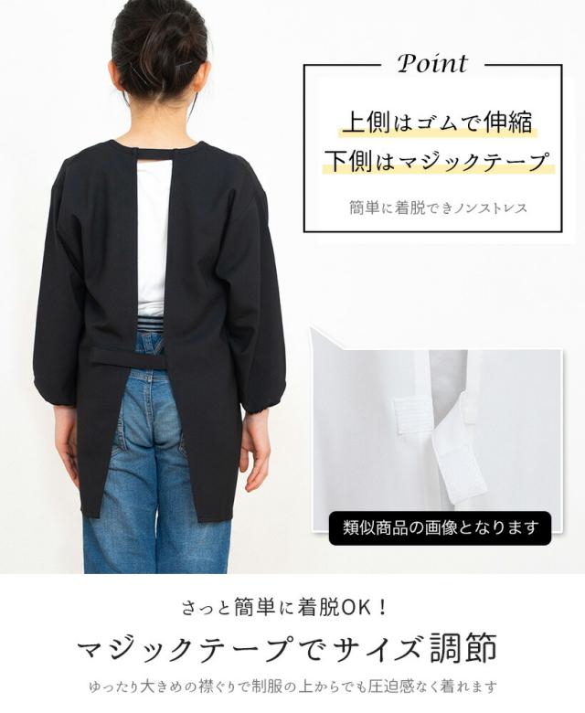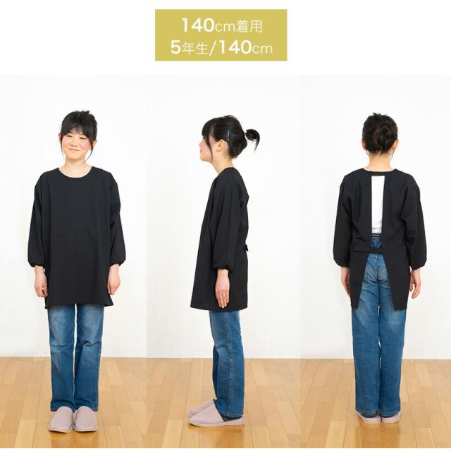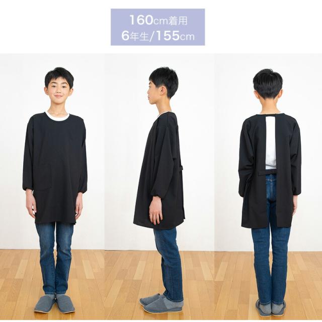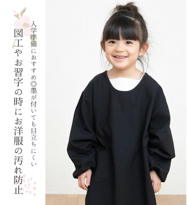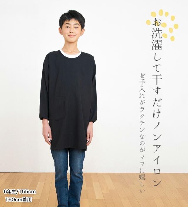 ノーアイロン♪ 習字用・図工用スモックエプロン 日本製 スモック 黒 割烹着 書道 小学生 キッズ 学校 120 130 140 150 160 【メール便1枚のみ送料無料】【N】【M】