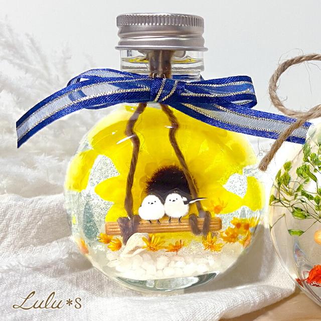 | 向日葵シマエナガのハーバリウム【Lulu"s-0557】 |