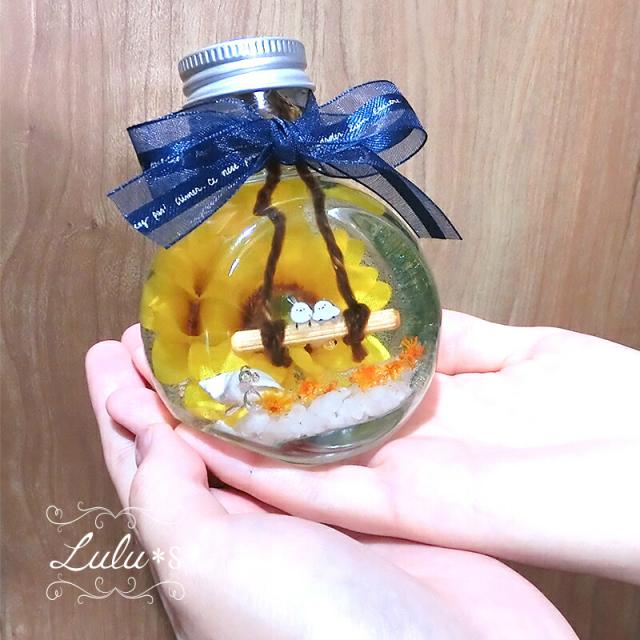 向日葵シマエナガのハーバリウム【Lulu's-0557】