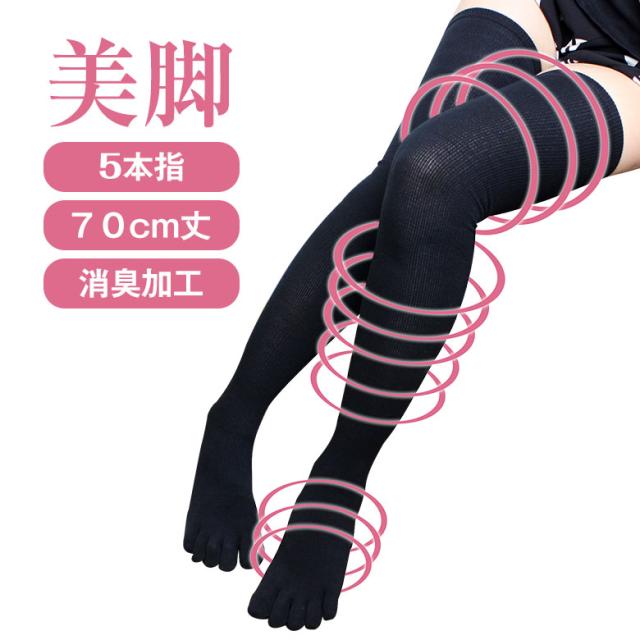 着圧ソックス ニーハイソックス 5本指 消臭靴下 70cm 日本製 オーバーニー ニーハイ ハイソックス 靴下 レディース 綿100% オーガニックコットン 消臭 消臭靴下 むくみ解消 冷え性 弾性ストッキング 弾性ソックス 脚痩せ ルームソックス むくみ取り 夜間頻尿 敬老の日