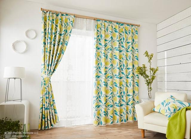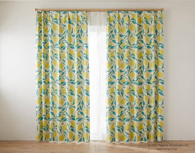 キャラクター デザインカーテン スヌーピー ピーナッツ 既製サイズ 約幅100×丈178cm P1040 キャンプレモン (S) 洗える 遮光 日本製 おしゃれ 引っ越し 新生活
