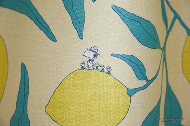 原作者チャールズM.シュルツの描く、コミック「PEANUTS」のキャラクターが描かれたファブリック。