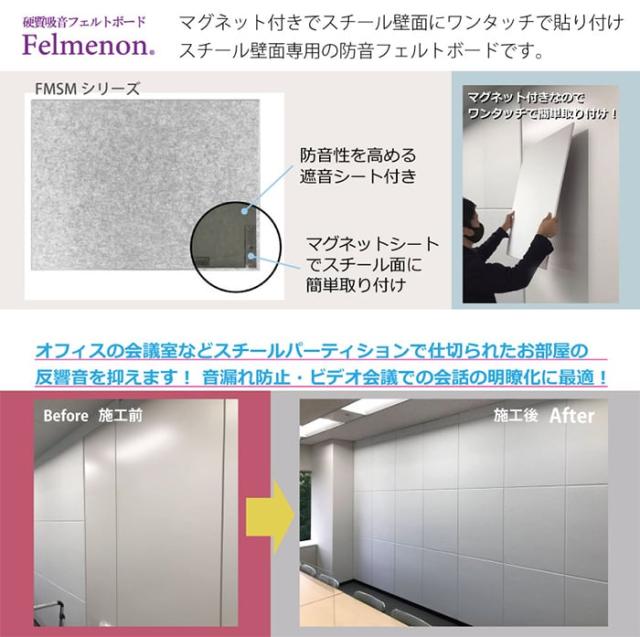 防音壁 吸音 遮音シート付き 裏面マグネット付き 約60×80cm 1枚単品 フェルメノン 防音フェルトボード(+吸音) (Do) FMSM-8060C フェルトボード 騒音対策 Felmenon 45度カット 引っ越し 新生活