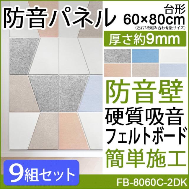防音パネル 吸音パネル フェルメノン (Do) FB-8060C-2DK 約60×80cm 台形 左右2枚セット 9組入 防音壁 硬質吸音フェルトボード デザイン 変形 引っ越し 新生活
