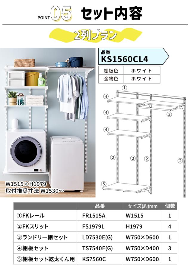 ■セット内容:FKレール×1、FKスリット×4、ランドリー棚セット×1、棚板セット×3、棚板セット乾太くん用×1