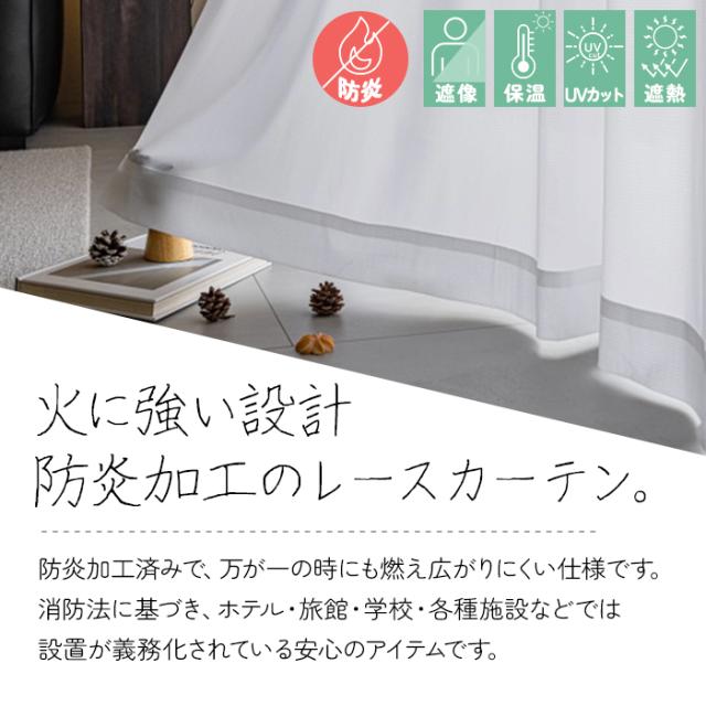レースカーテン 防炎 カーテン レース 防炎加工 ホテル 旅館 施設 火に強い ホワイト加工 遮熱 UVカット 洗える 幅100×丈133cm 防炎レースカーテン (KH) 夜見えにくい 遮像 断熱 保温 省エネ 2枚組 ストライプ ボーダー ナチュラル シンプル