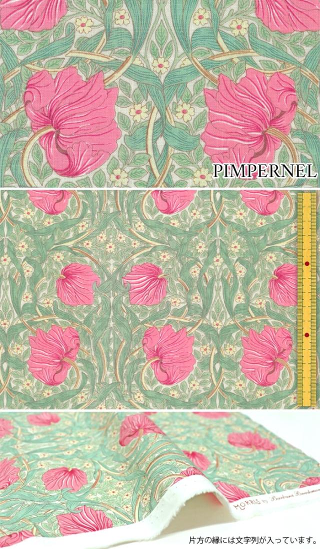 モリス柄 デザイン生地 モダ・ファブリックス 約幅110cm 10センチ単位 切り売り (10cmあたり) ピンパネル 8365-63 (Y) 日本製 シーチング生地 布 布地 手芸 コットン100% ピンパーネル ルリハコベ ピンク グリーン ボタニカル 植物 生地 花柄 切売り販売