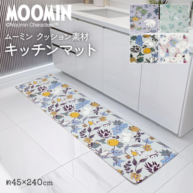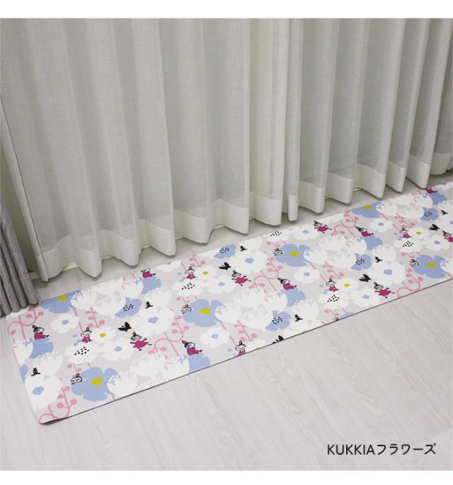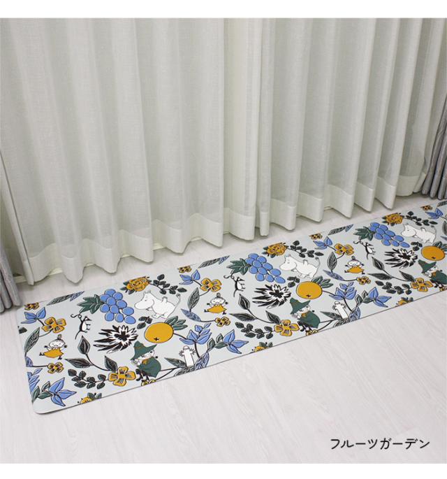 ムーミン キッチンマット 約45×240cm KUKKIAフラワーズ / フルーツガーデン / ボタニカルグリーンリトルミイ / ムーミンと草花 (Y) 拭ける おしゃれ 240cm 北欧 マット PVC グッズ かわいい ムーミンシリーズ 室内 クッション素材 リトルミイ スナフキン 花柄 フラワー