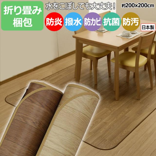 ダイニングラグカーペット 撥水・防汚ラグマット DR (Y) 約200×200cm 1.8mm厚 折り畳み梱包 防炎 抗菌 防カビ機能付き 日本製 フロアマット 引っ越し 新生活 ダイニングマット