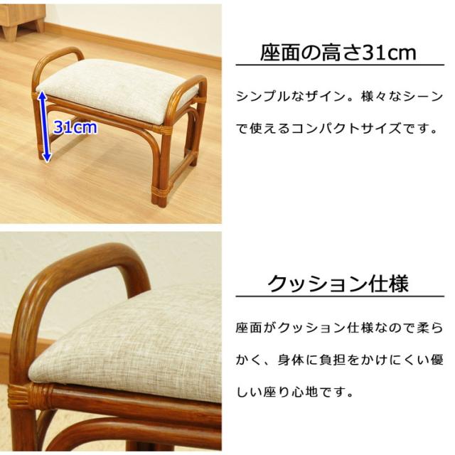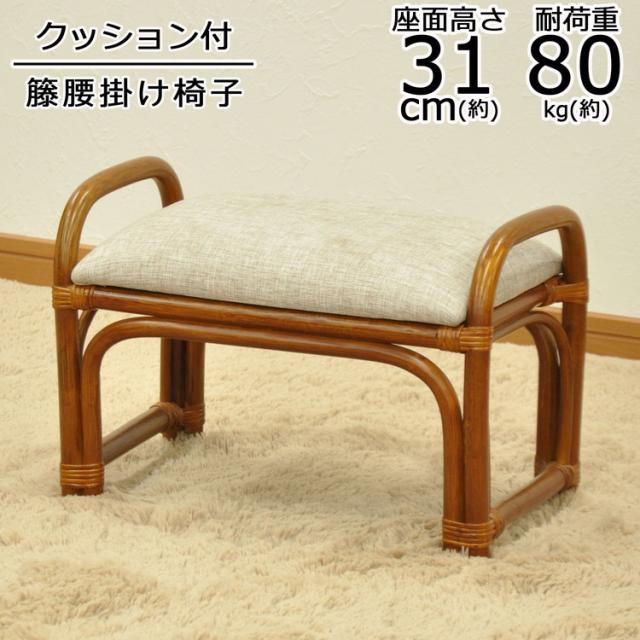 椅子 ラタン 籐腰掛椅子 籐椅子 座面高さ31cm 天然素材 丈夫 軽量 コンパクト クッション 取っ手付き 持ち運び 浴室 玄関 客間 耐久性 和風 和室(代引不可)【送料無料】