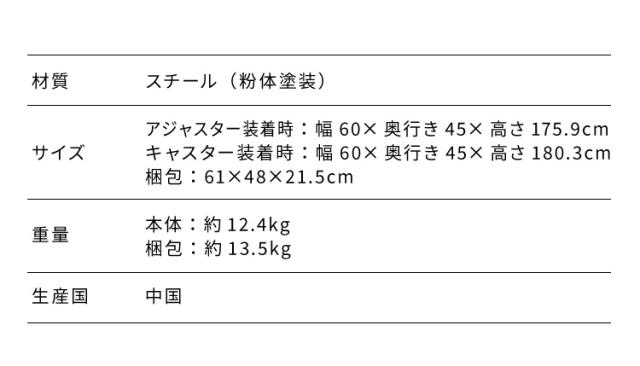 本体キャスター装着時:幅60×奥行き45×高さ180.3cm