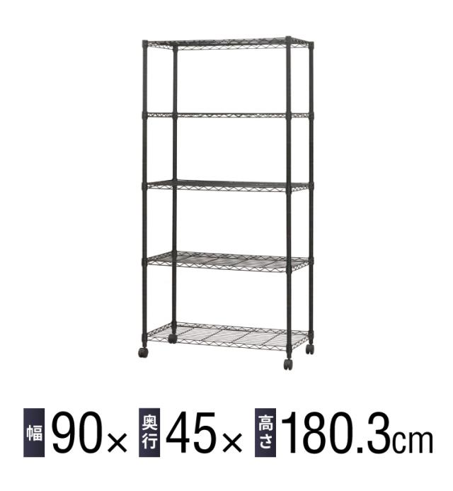 ネーロ スチールラック 5段 幅90 奥行き45 五段 オープンラック ラック スチール 収納 ヴィンテージ おしゃれ ワイド コンパクト 薄型 棚(代引不可)【送料無料】
