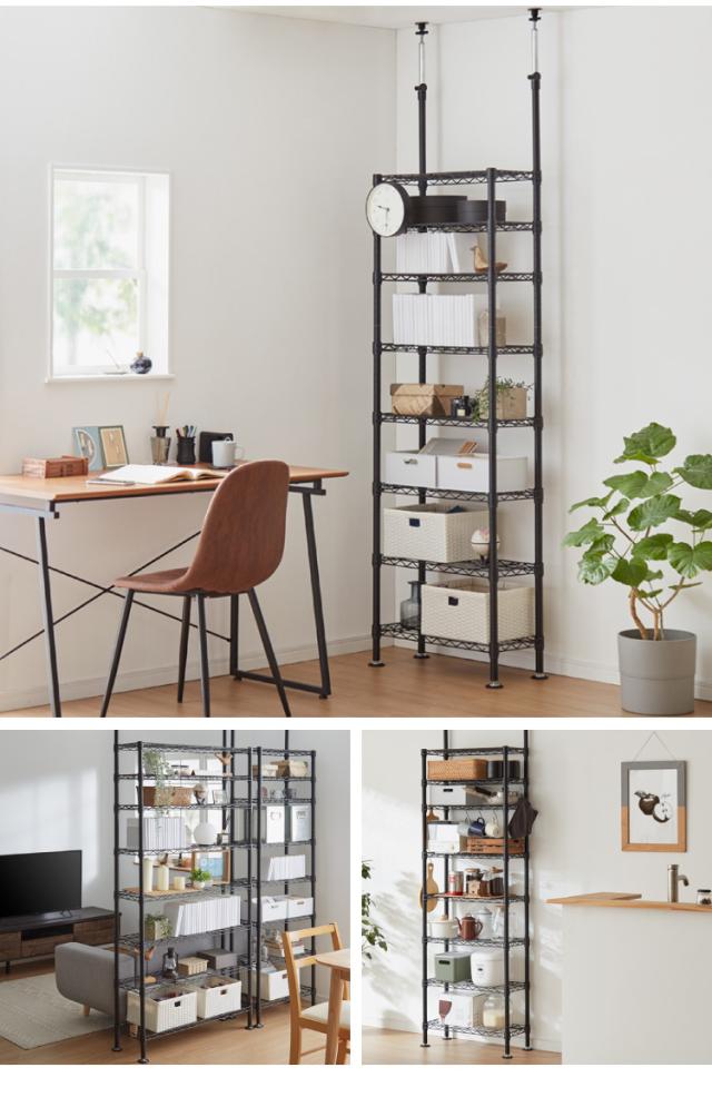 ◆25φ 『NERO』シリーズ 幅63×奥行30×高さ220〜245cm(天井突っ張り支柱2本付き) 8段