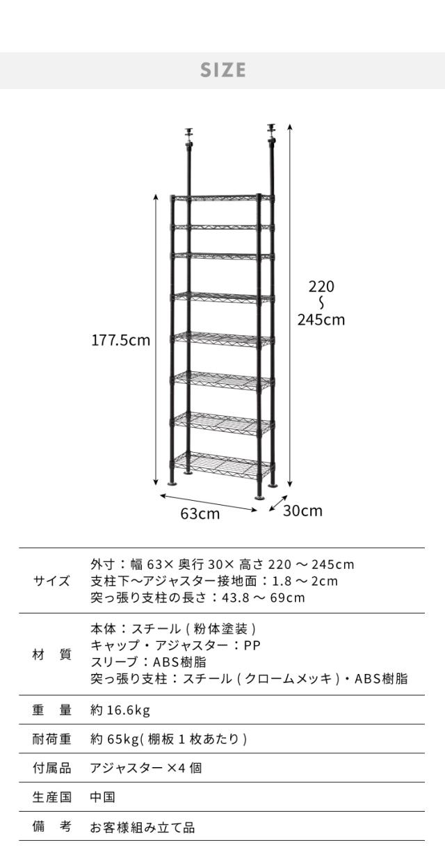 ・製品サイズ(約):幅63×奥行30×高さ220〜245cm(アジャスターを含む)