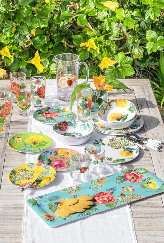 庭園に咲くフローラルをデザインモチーフとした質感のあるメラミン食器です