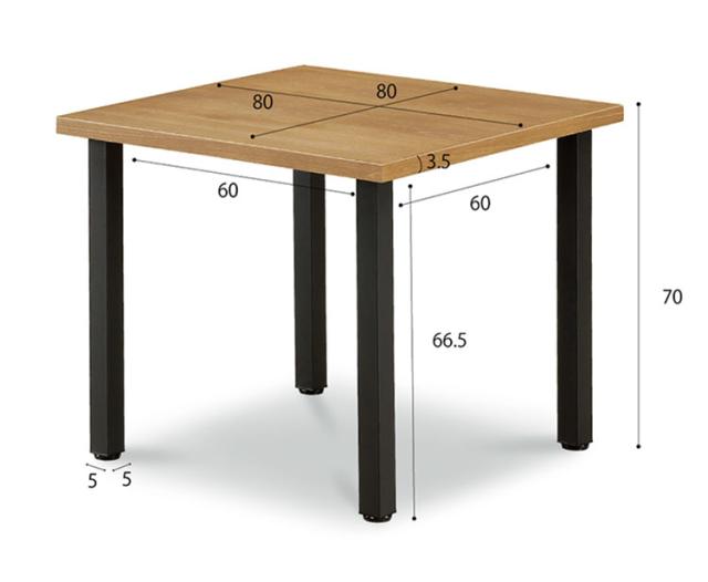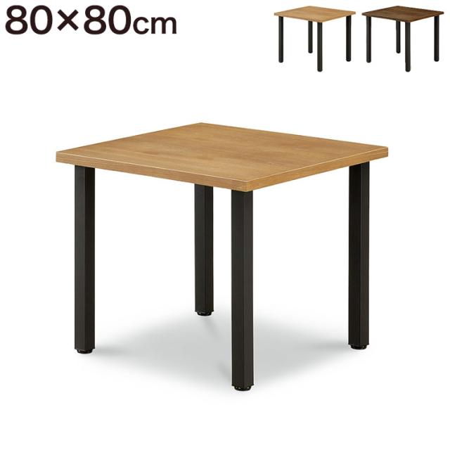 ダイニングテーブル 幅80cm テーブル 正方形 天然木 アイアン脚 おしゃれ 木目 リビング ダイニング 食卓 机 4本脚 2人用 2人掛け リビングテーブル カフェテーブル 奥行80cm 高さ70cm 単品 鉄脚(