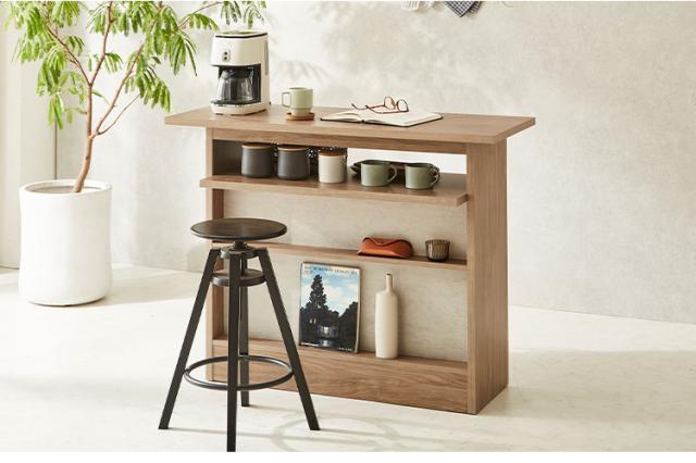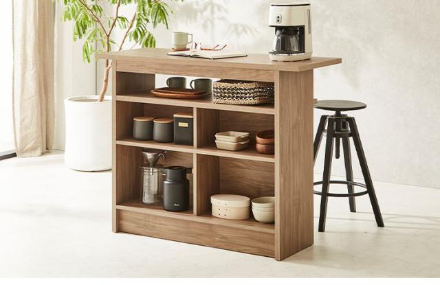 バーカウンター カウンターテーブル T型 幅115cm 高さ93cm キッチンカウンター 食器棚 キッチンボード バーテーブル 台所収納 ラック マルチラック 業務用 レジカウンター 木目調 木製(代引不