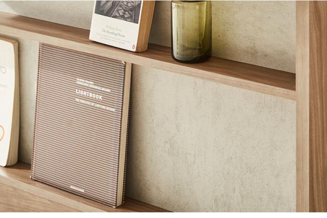 クールで無機質なモルタル柄と温かみのある木目柄を組合わせた温暖差コントラストが印象的。