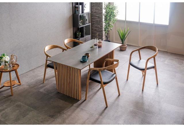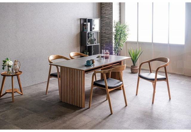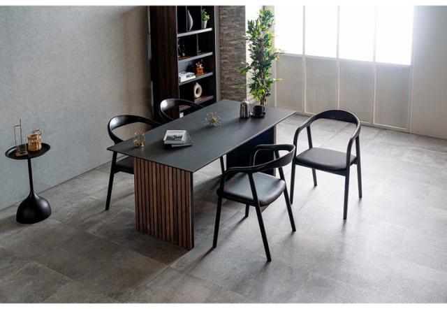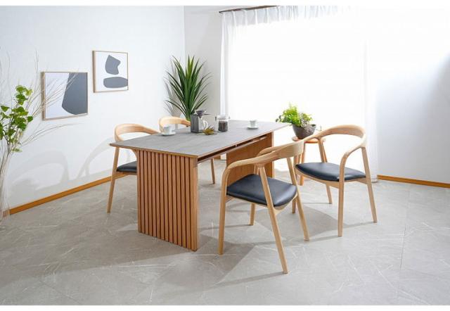 セラミックと突板の異素材融合。格子状の脚が雰囲気を醸し出す唯一無二なデザインの和モダンダイニングテーブル。