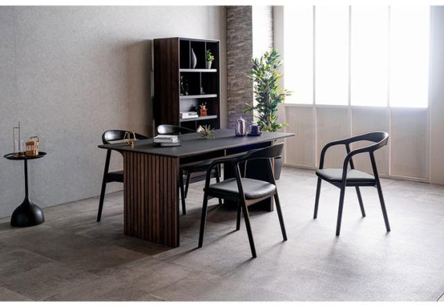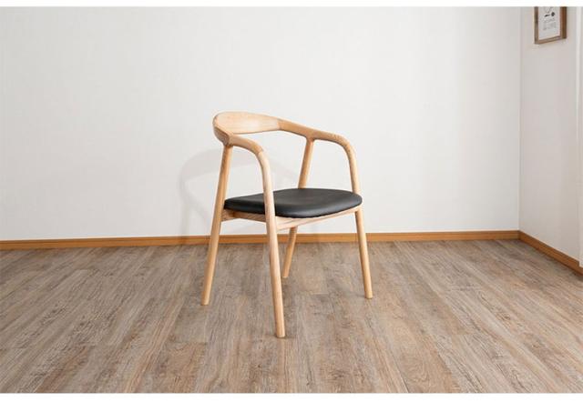 アッシュ無垢/ラバーウッド無垢を贅沢に使用したチェア。座面を広く設計しゆとりのある座り心地を実現しつつ、重たさを感じさせないスタイリッシュなデザイン。