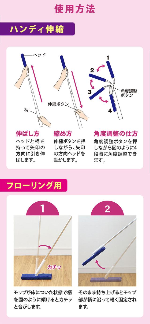 ■伸縮:モップ/約40×50×長さ510・970mm モップ部長さ/約185mm
