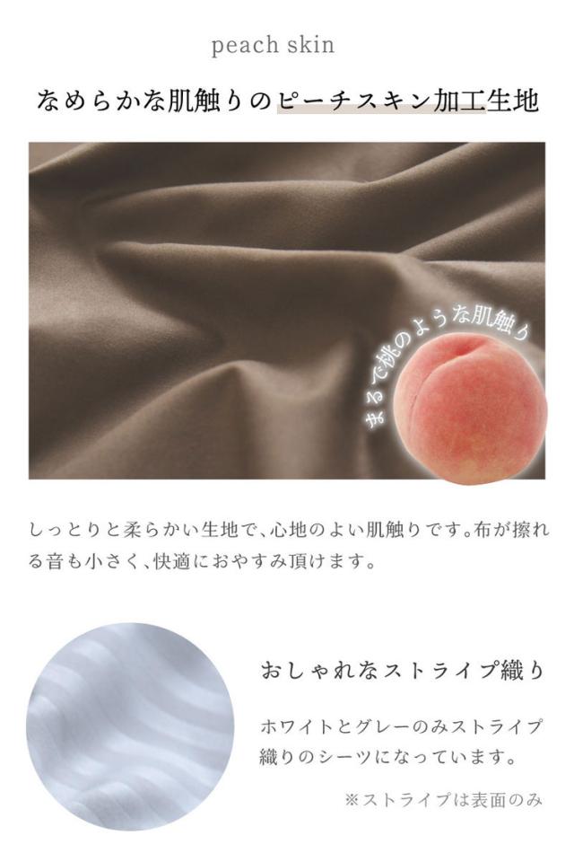 肌にあたる生地は、なめらかな肌触りのピーチスキン加工なので快適にお休みいただけます。