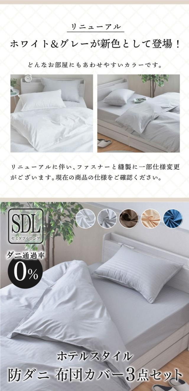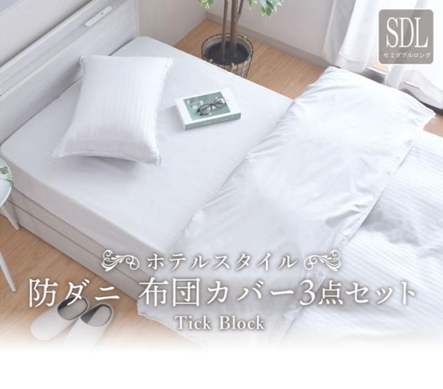 ダニ通過率0% カバー3点セット セミダブルロング 約170×210cm ダニを通さない生地 高密度繊維 防ダニ ホテル仕様 掛け布団カバー 敷布団カバー or ボックスシーツ 枕カバー 布団カバー 寝具カ