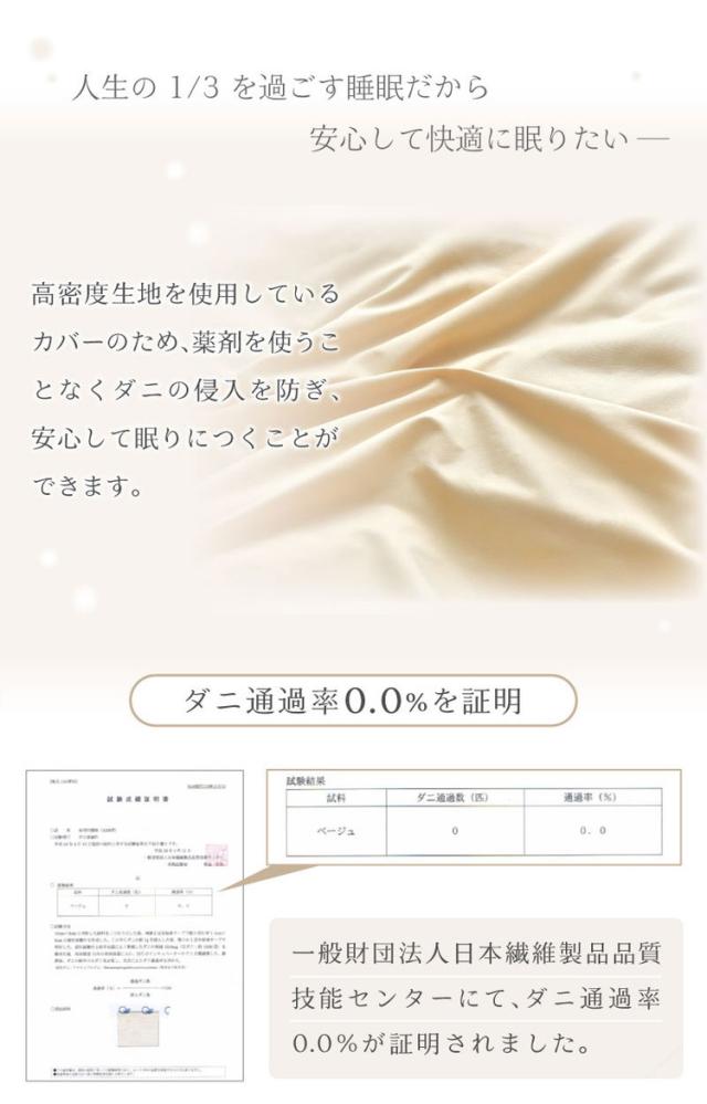 ダニが通過できない高密度の生地 薬剤を使うことなくダニを防ぎます。