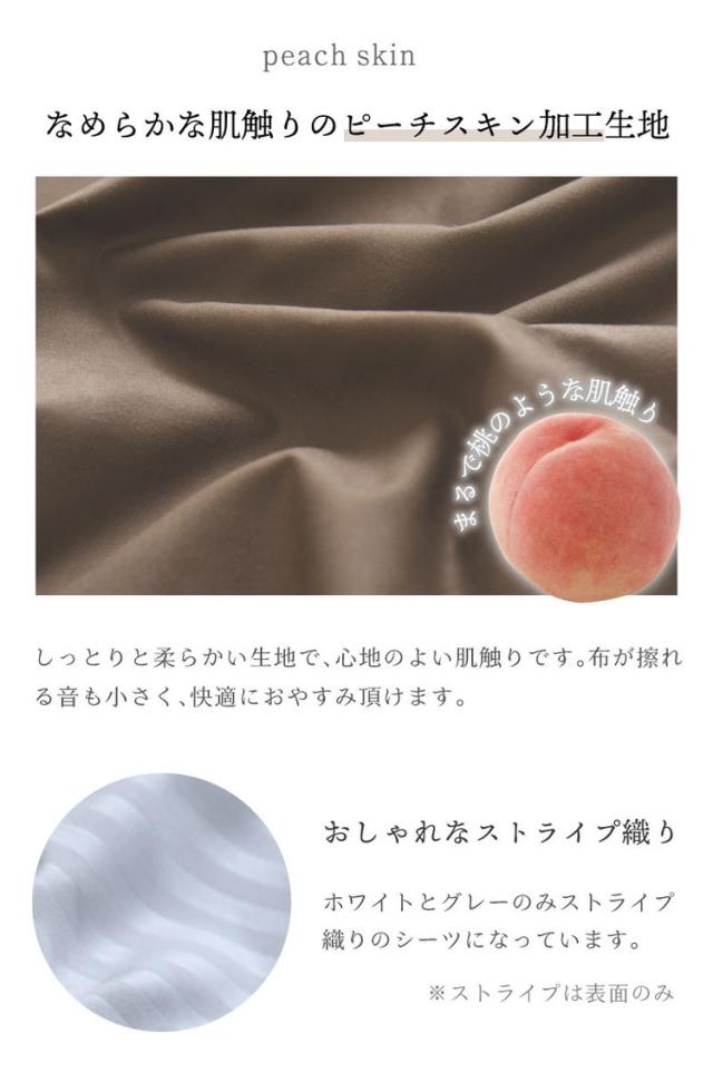肌にあたる生地は、なめらかな肌触りのピーチスキン加工なので快適にお休みいただけます。