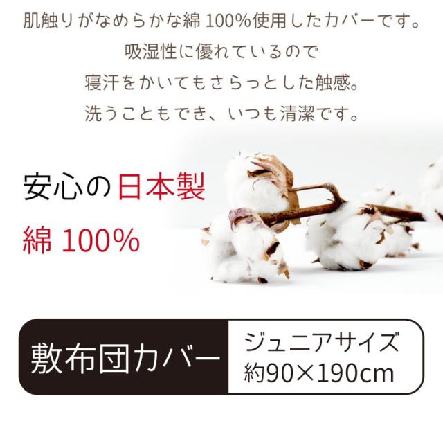 敷布団カバー ジュニア 90×190cm 国産 綿100% シンプル 寝具 コットン100% シーツ 洗える 丸洗い 洗濯 通気性 睡眠 新生活 一人暮らし 日本製 かわいい おしゃれ 北欧(代引不可)【送料無料】