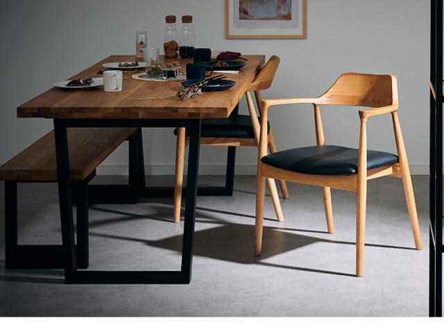 [テーブル]天板:オーク無垢集成材/脚:ラバーウッド無垢