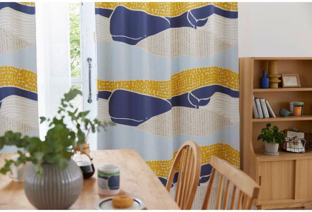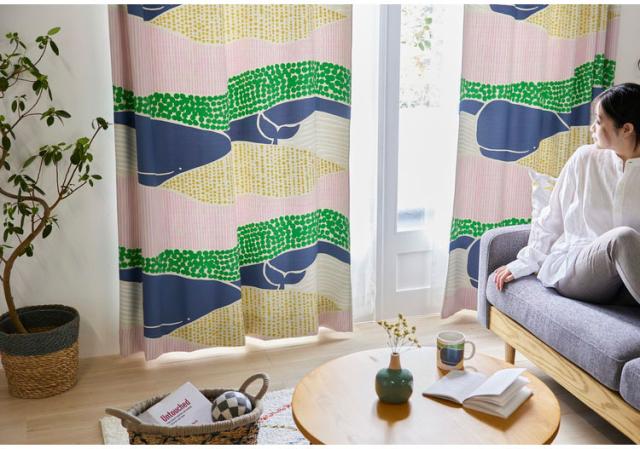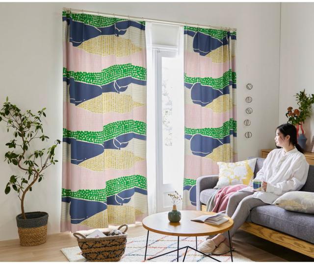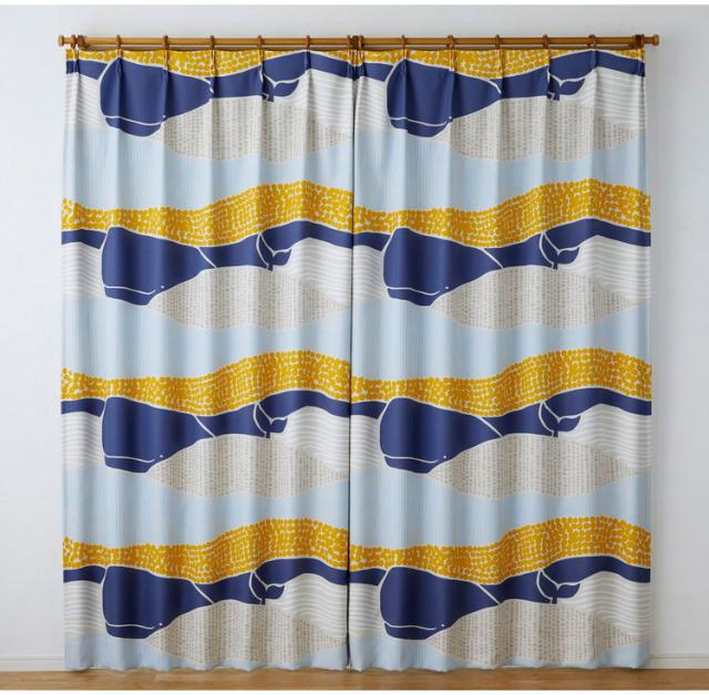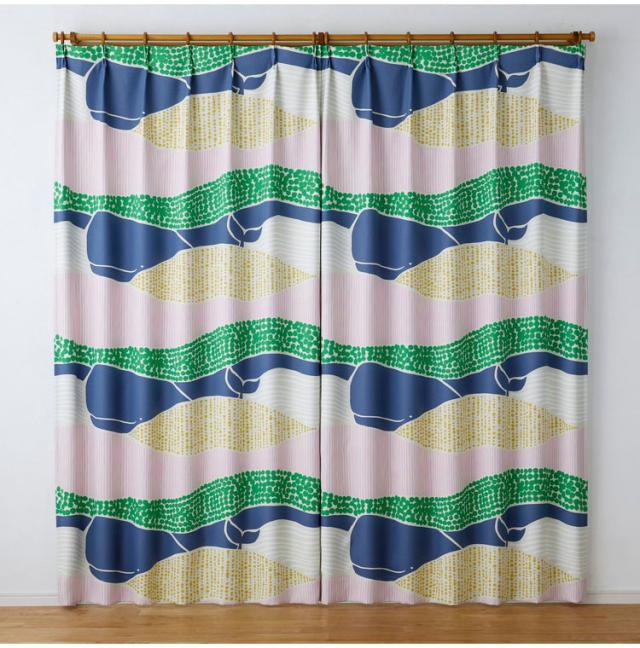 カーテン クジラボヤージュ 幅100 ドレープカーテン 遮光カーテン 日本製 国産 ウォッシャブル 洗える 子供部屋 おしゃれ かわいい 北欧 カラフル 形状記憶 ピンク ブルー 新生活(代引不可)【送料無料】